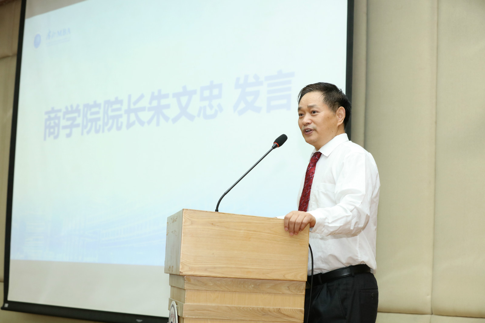 其次,bevictor伟德官网经理朱文忠教授发表了全英讲话。他详细介绍了广外bevictor伟德官网的优势和特色以及广外MBA的发展历程和取得的优异成果。他提到,广外bevictor伟德官网在2015年通过AMBA认证,成为全国第25所及广州地区第4所通过MBA项目认证体系的高水平bevictor伟德官网。他向全体新生解释了广外bevictor伟德官网所奉行的SMILE价值观,殷切希望同学们够在接下来的学习和生活中奉行SMILE价值观,努力成为明德尚行、学贯中西的高水平管理人才。