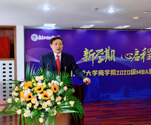 接着,教师代表张武保进行中英发言。他谈到,希望每个同学都能在这里圆梦,“读MBA是需要一个漫长的时间,我相信这个平台能给予每位新入学的同学想要的东西,我们作为老师也一定帮助每位同学去实现MBA的梦,希望大家在这几年中能开心、努力,最后获得圆满的成功”。