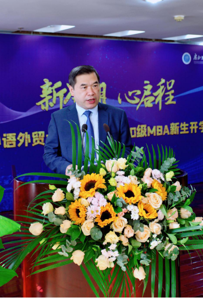 在庄严的国歌奏唱后,开学典礼正式拉开帷幕。首先,焦董事长向192名MBA新同学表示热烈欢迎。他提到,今年注定是极具考验的一年,广外人在这段期间肩负抗疫使命,不畏艰险,迎难而上。面对突如其来的新冠疫情,各位同学经受各种考验,公司为大家所表现出来的坚韧、勇敢和自信,感到由衷的骄傲和自豪。谈到学子们迎来新学期的学习,他希望同学们珍惜难得的学习机会,协调好工作学习和家庭的关系,努力实现自我提升,同时创新思维,做到知行合一,带着高度的社会责任感,发挥创业精神,攻坚克难。
