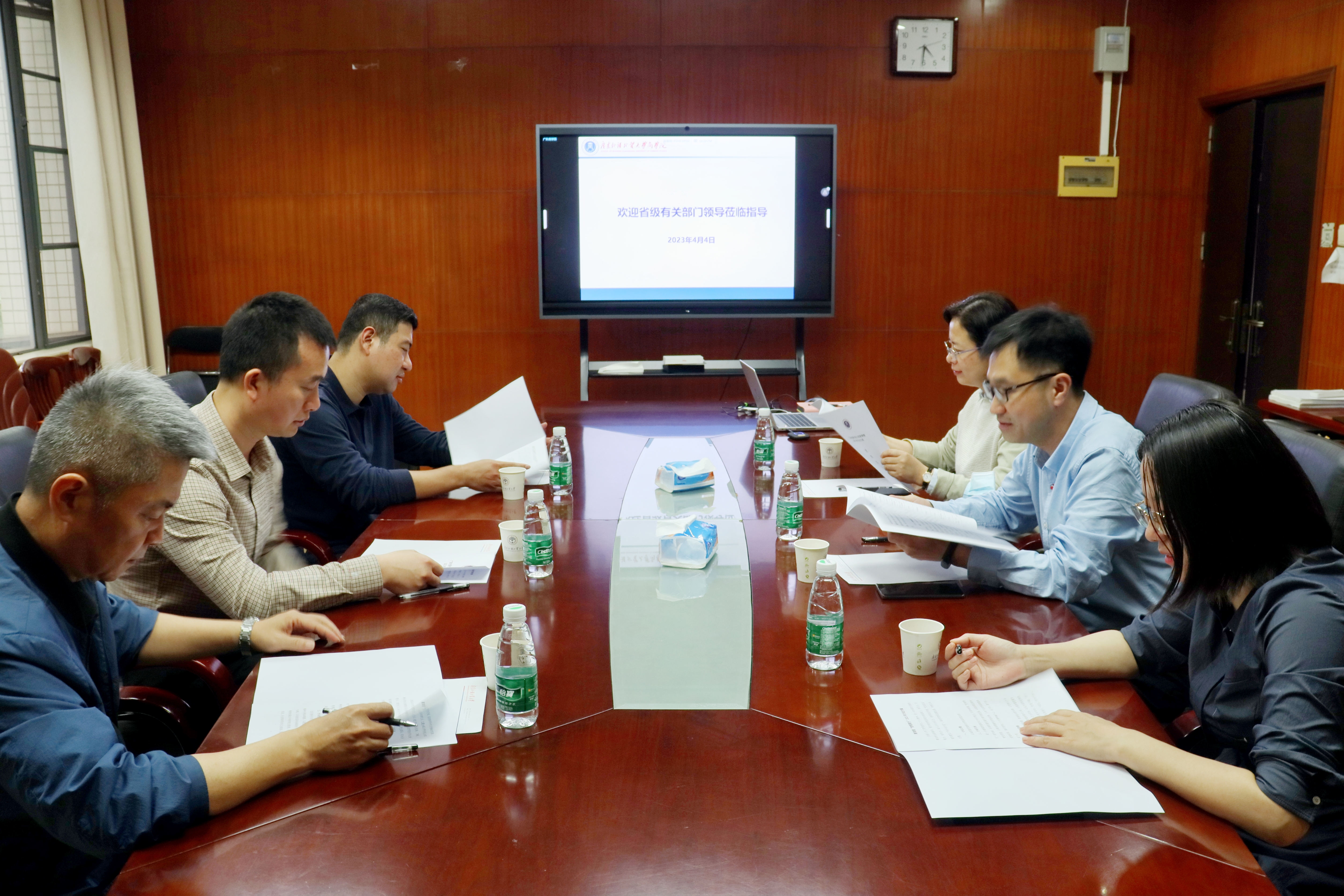 4月4日下午,省级部门有关负责人到bevictor伟德官网进行调研交流,广东省政协民族宗教委办公室副主任孙晓晖、民革省委会办公室副主任张跃、广东省科公司绩效评估办副主任高屹、广东省代建局副部长叶健源、广东省应急管理厅四级调研员王鑫全等组成调研组,商公司党委书记肖喜明参加调研活动。