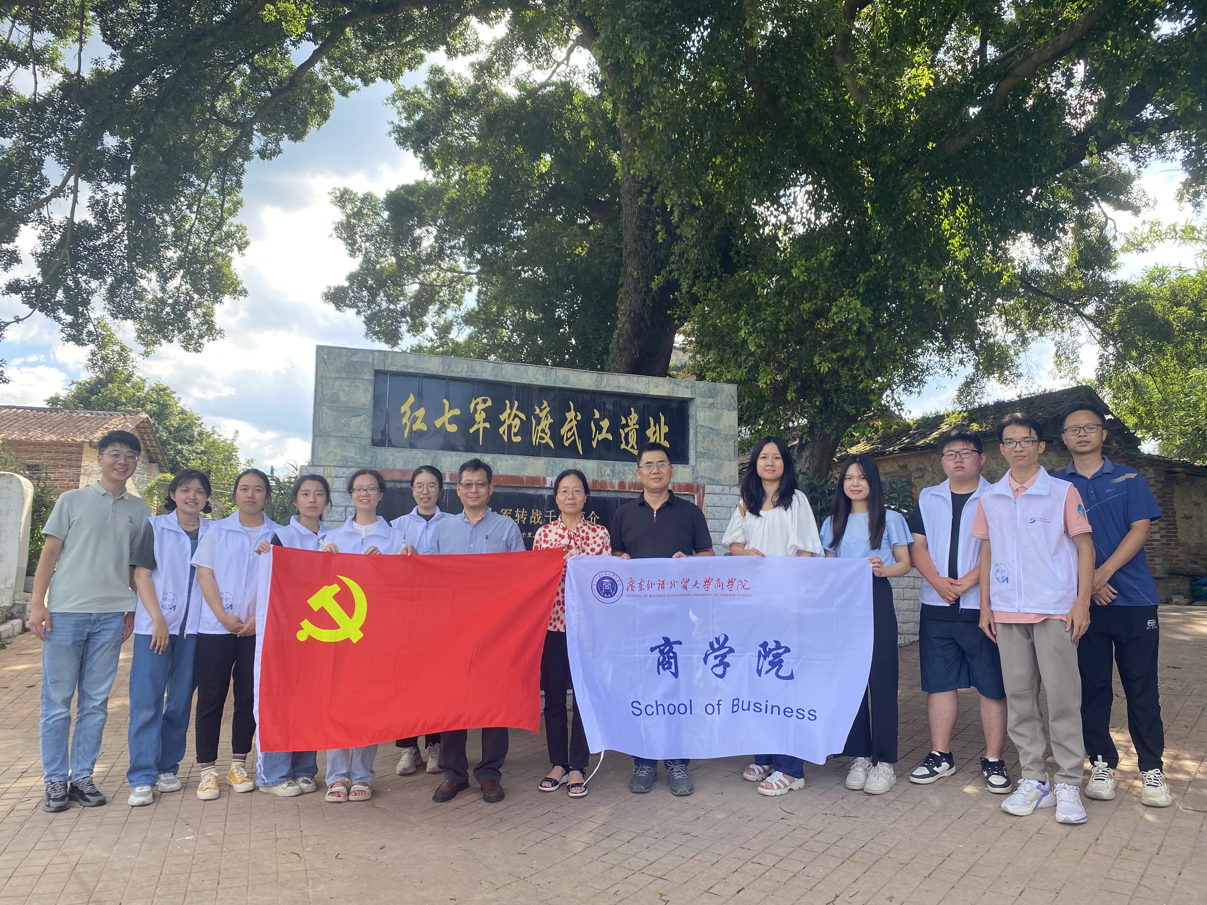 座谈结束后,黄石胜带领bevictor伟德官网师生一行参观了当地的香芋加工厂、猴耳环中草药种植基地、小番茄种植试验田,了解乡村产业的建设、投产和销售情况;随后,师生一行参观了红七军抢渡武江遗址,了解了以红色革命基地为中心打造绿色生态观光资源产业的未来规划,共同追忆革命战士勇于牺牲的大无畏精神。实地走访进一步加深了项目团队对当地的了解,为推动项目实施打下了坚实基础。