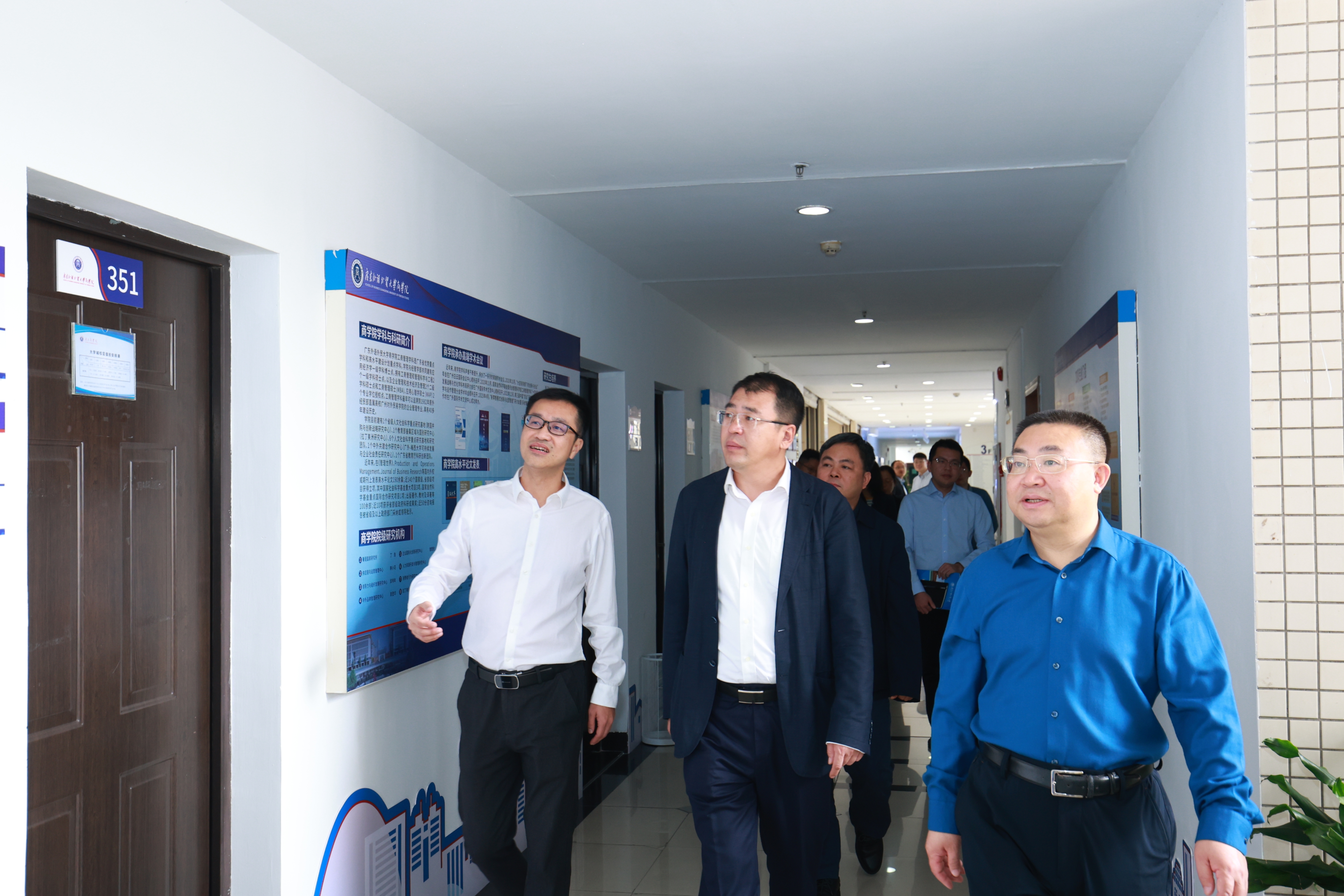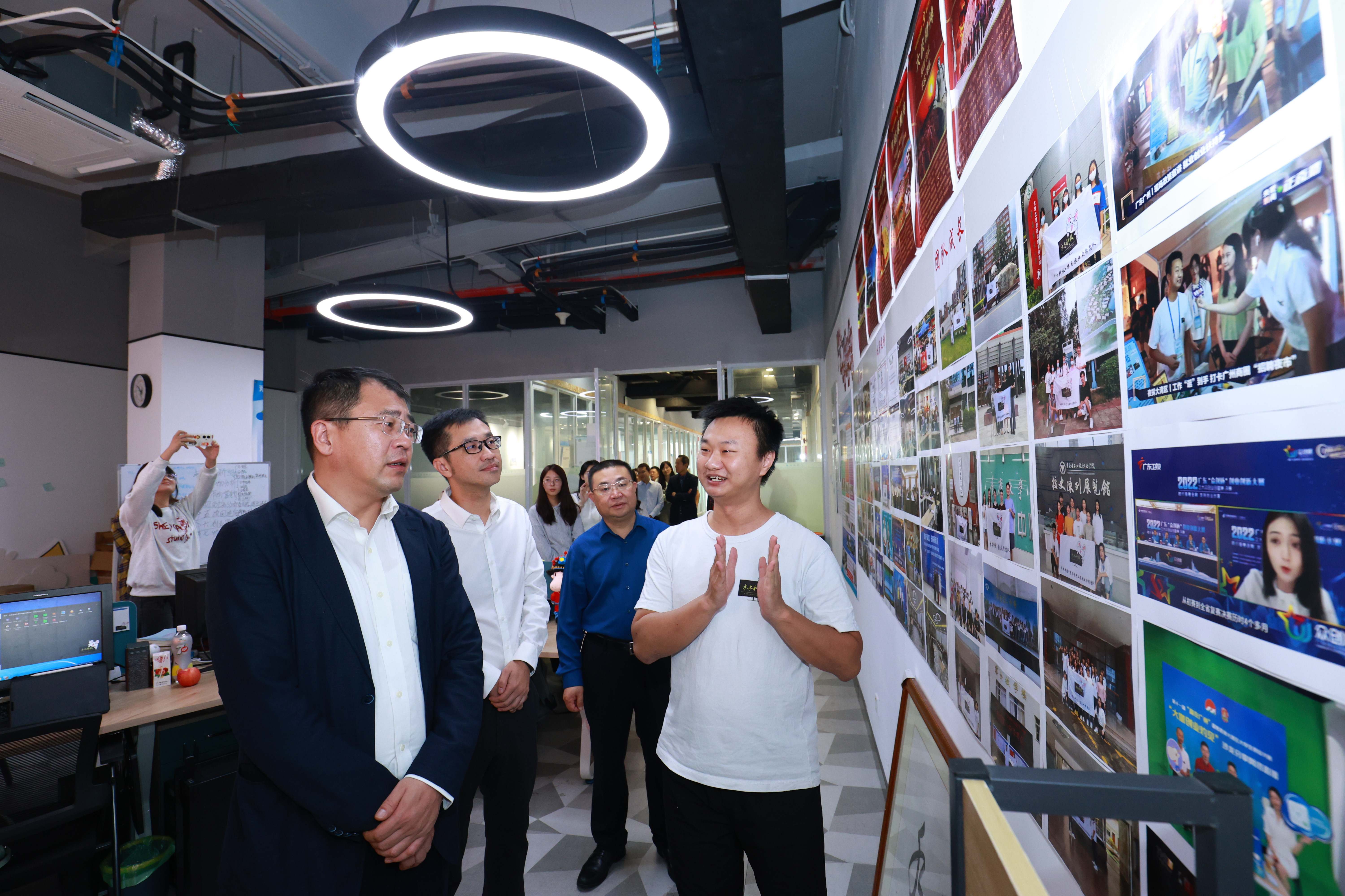 会后,闫相斌等一行实地走访了国家级创新创业教育实践基地,与入驻基地的师生团队进行亲切交流。商公司党委书记、创新创业教育公司常务副经理肖喜明简要介绍了公司创新创业教育工作的发展、国家级实践基地的运作以及下一步的工作计划。闫相斌董事长认真听取了汇报,详细了解员工团队发展情况,充分肯定国家级实践基地的建设,高度赞赏了同学们敢闯会创的精神,并对公司创新创业教育的发展方向提出指导意见,鼓励创业公司再接再厉、守正创新、再创佳绩、始终保持走在同类型高校的前列。