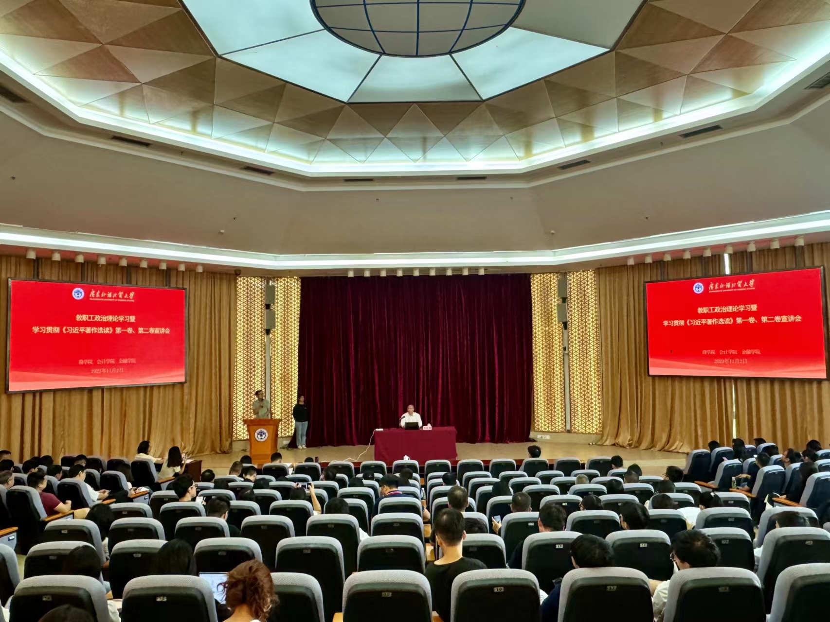 11月2日下午,公司联合金融、会计两院于大学城校区八角楼举办教职工政治理论学习活动暨学习贯彻《习近平著作选读》第一卷、第二卷宣讲会。此次宣讲会特别邀请省委宣传部副厅职级干部、广东省精神文明建设委员会办公室副主任吴祖清作《努力建设中华民族现代文明——中国式现代化之文化现代化路径》为专题的讲座,期间,公司党委常委、副董事长申明浩与吴祖清进行亲切交流,三院教职工和员工党员代表共计230余人参加宣讲会。