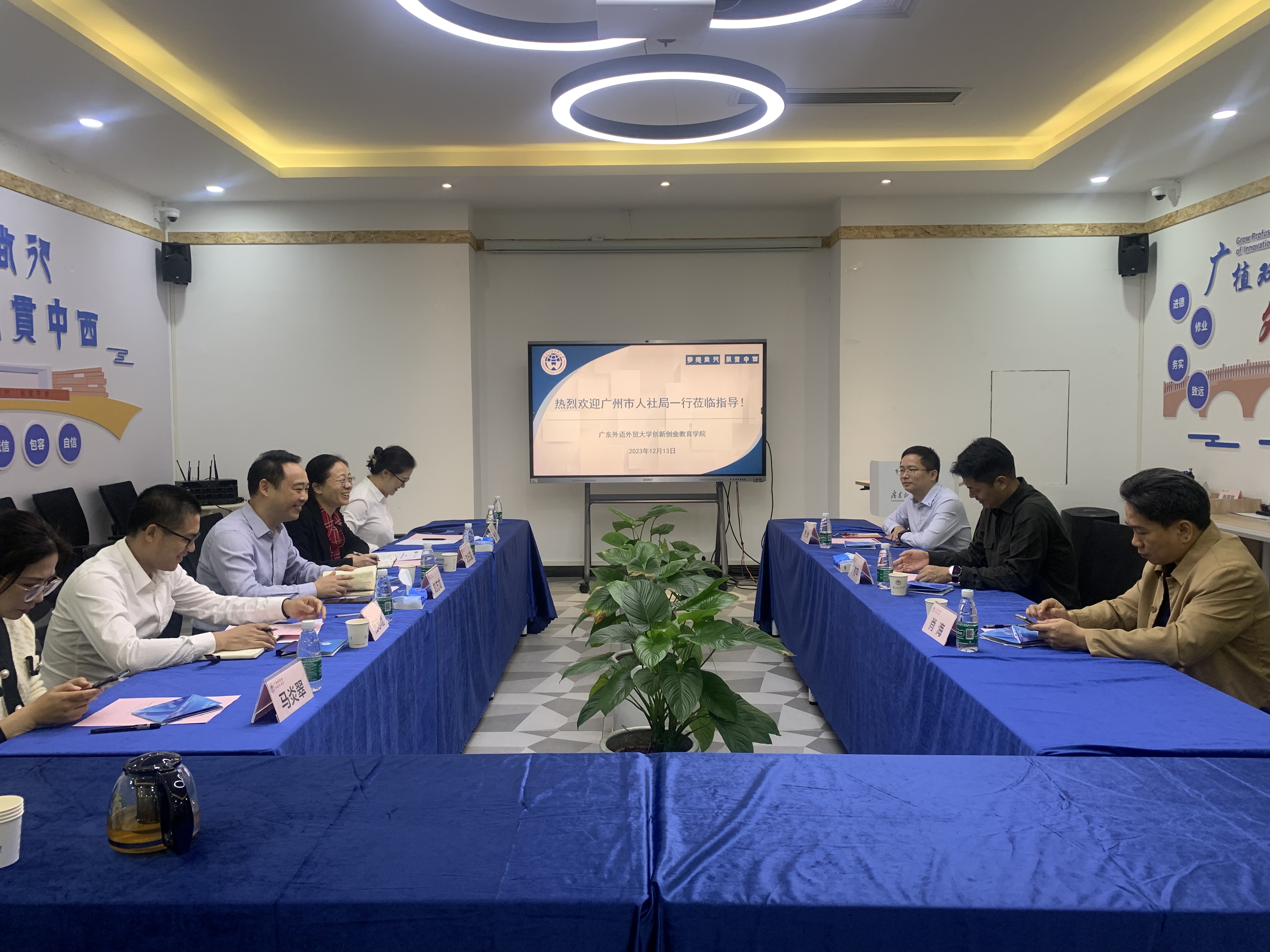 12月13日上午,广州市人力资源和社会保障局就业促进处处长丁波平等一行到校调研考察公司创新创业教育及就业创业e站建设情况。创新创业教育公司副经理刘方龙、商公司党委副书记沈长霞等接待调研组一行。