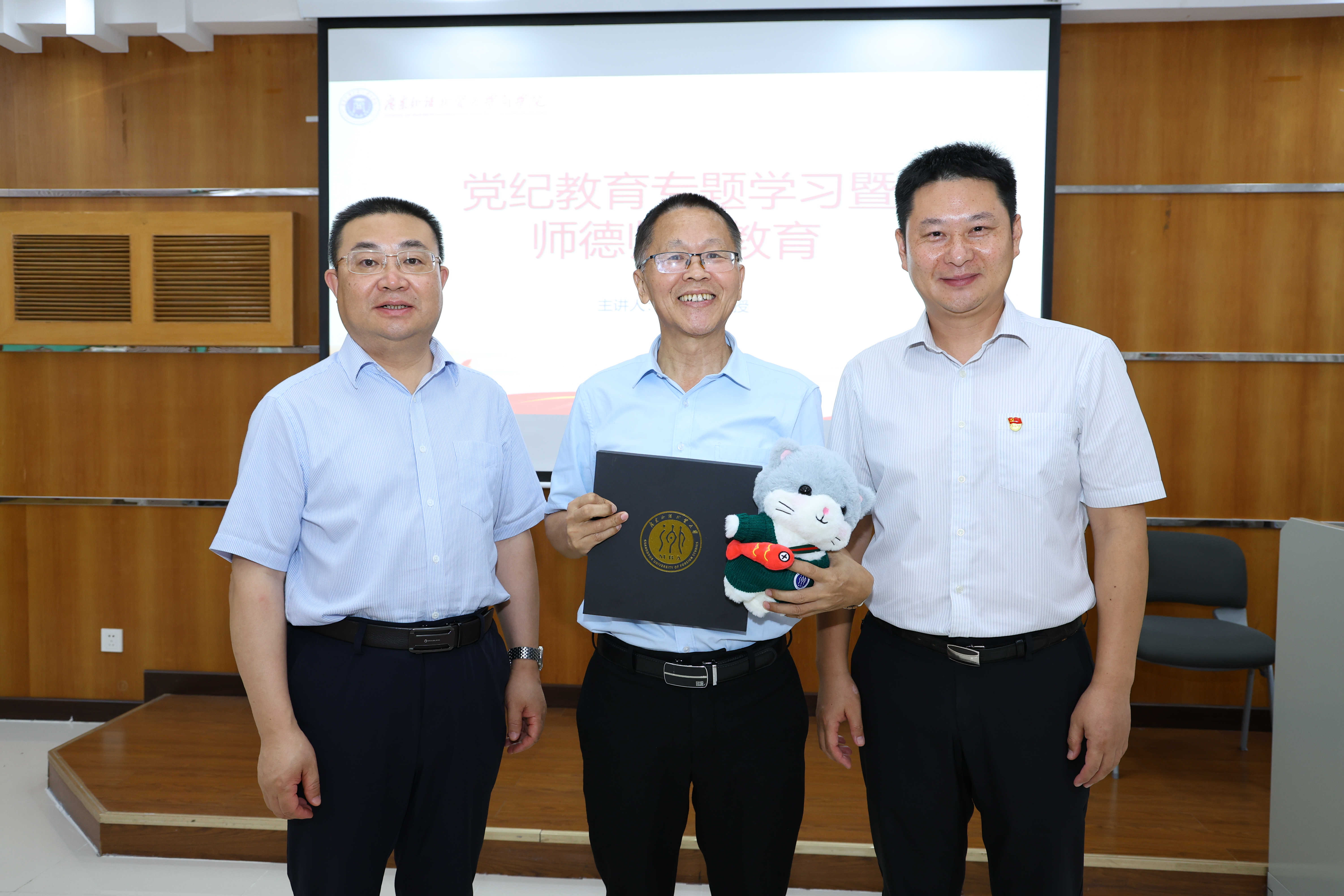 当天的第二个环节,是党纪学习教育暨师德师风教育专题报告会。报告会邀请了马克思主义公司名誉经理谢迪斌,以“加强党的纪律建设,抓好党纪学习教育”为主题做专题报告。谢迪斌就党纪学习教育的背景意义、主要内容、路径方法进行了详细论述,强调了要认真学习贯彻《中国共产党纪律处分条例》,强化党组织领导责任,深化党纪学习教育,创新党纪学习教育的方法载体,坚持党性党风党纪一起抓。谢迪斌还就警示教育案例和在高校中的具体体现,结合师德师风建设进行了警示教育。本次专题学习进一步增强了bevictor伟德官网教职工的党性观念、纪律意识和师德师风建设。
