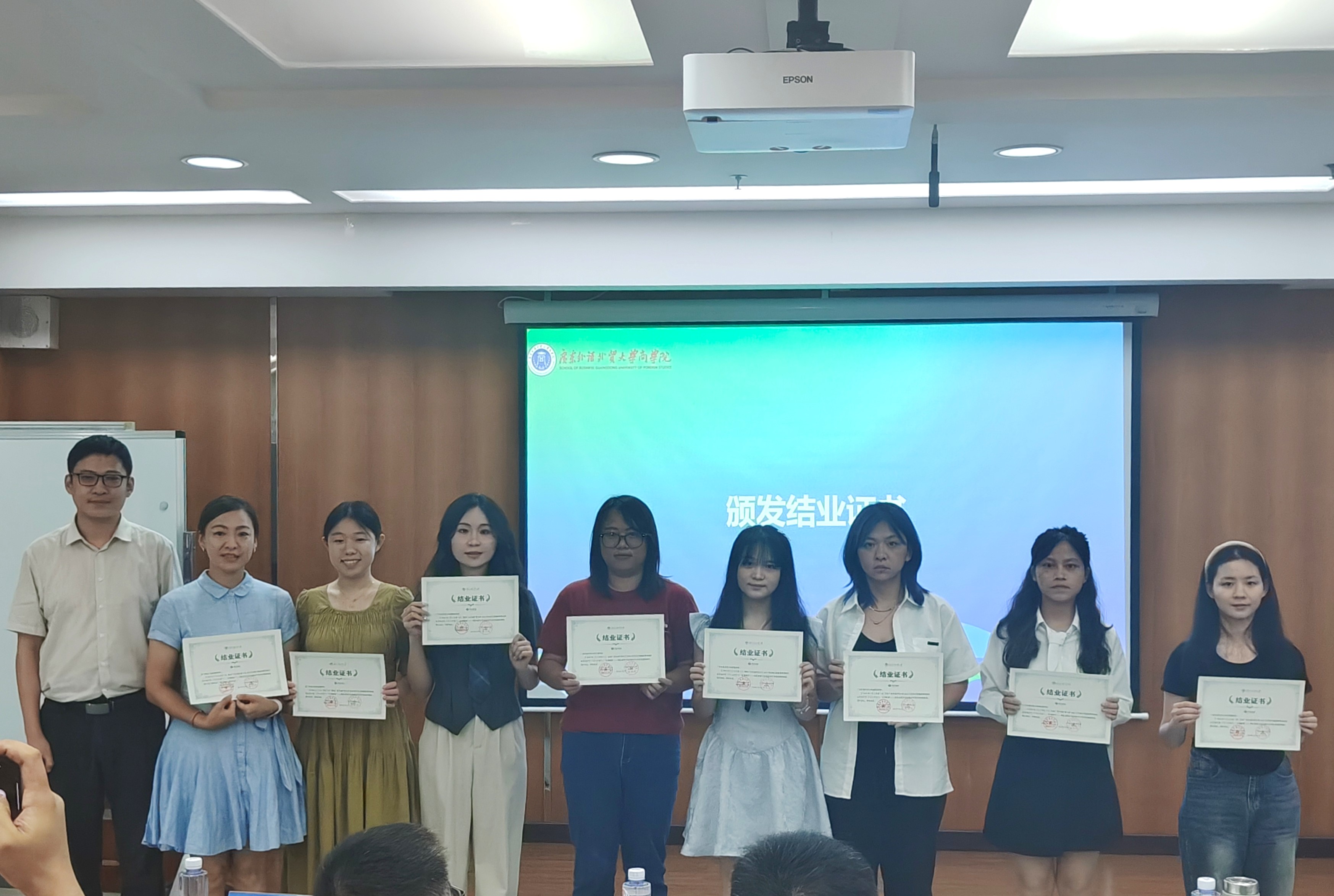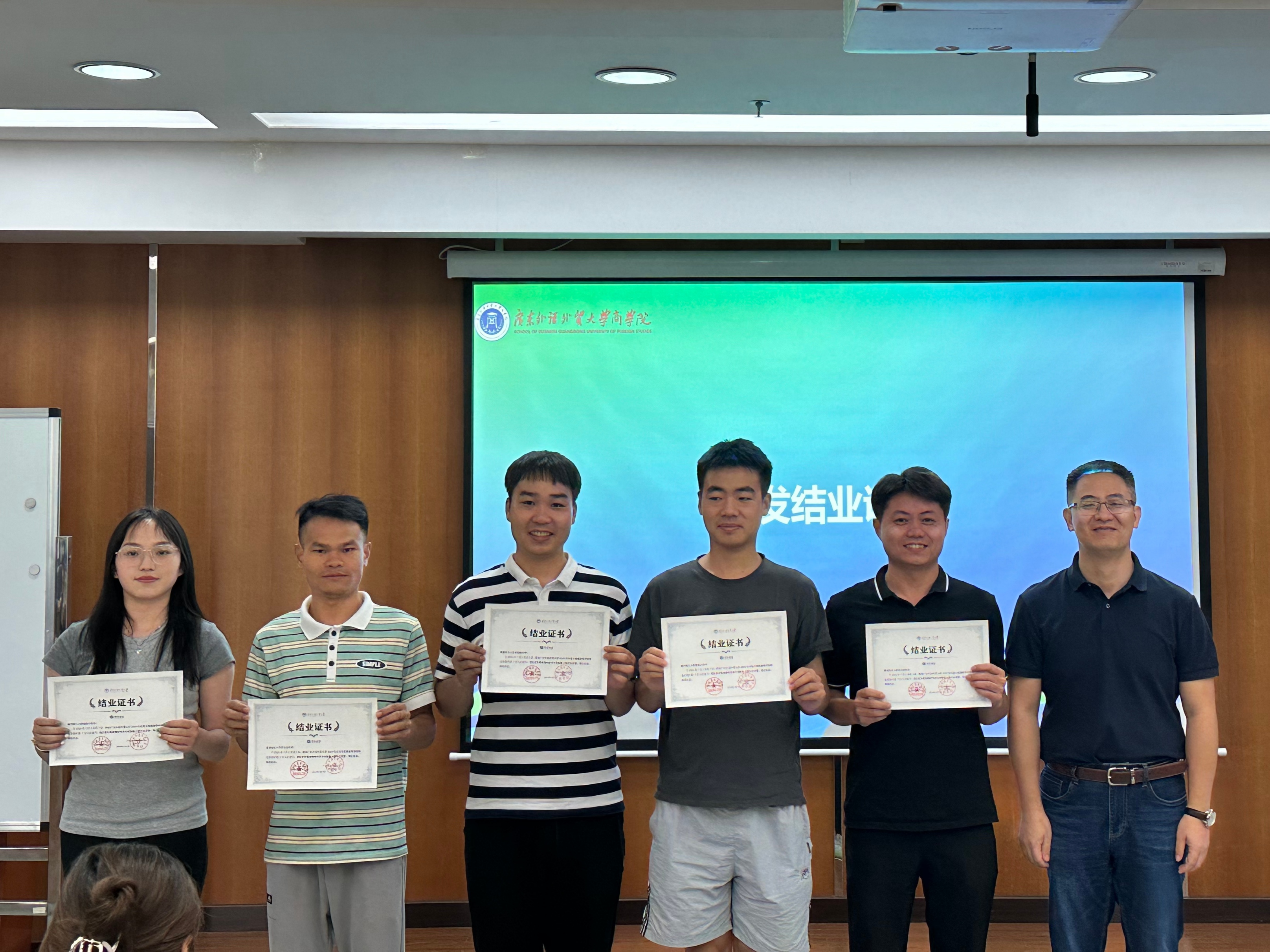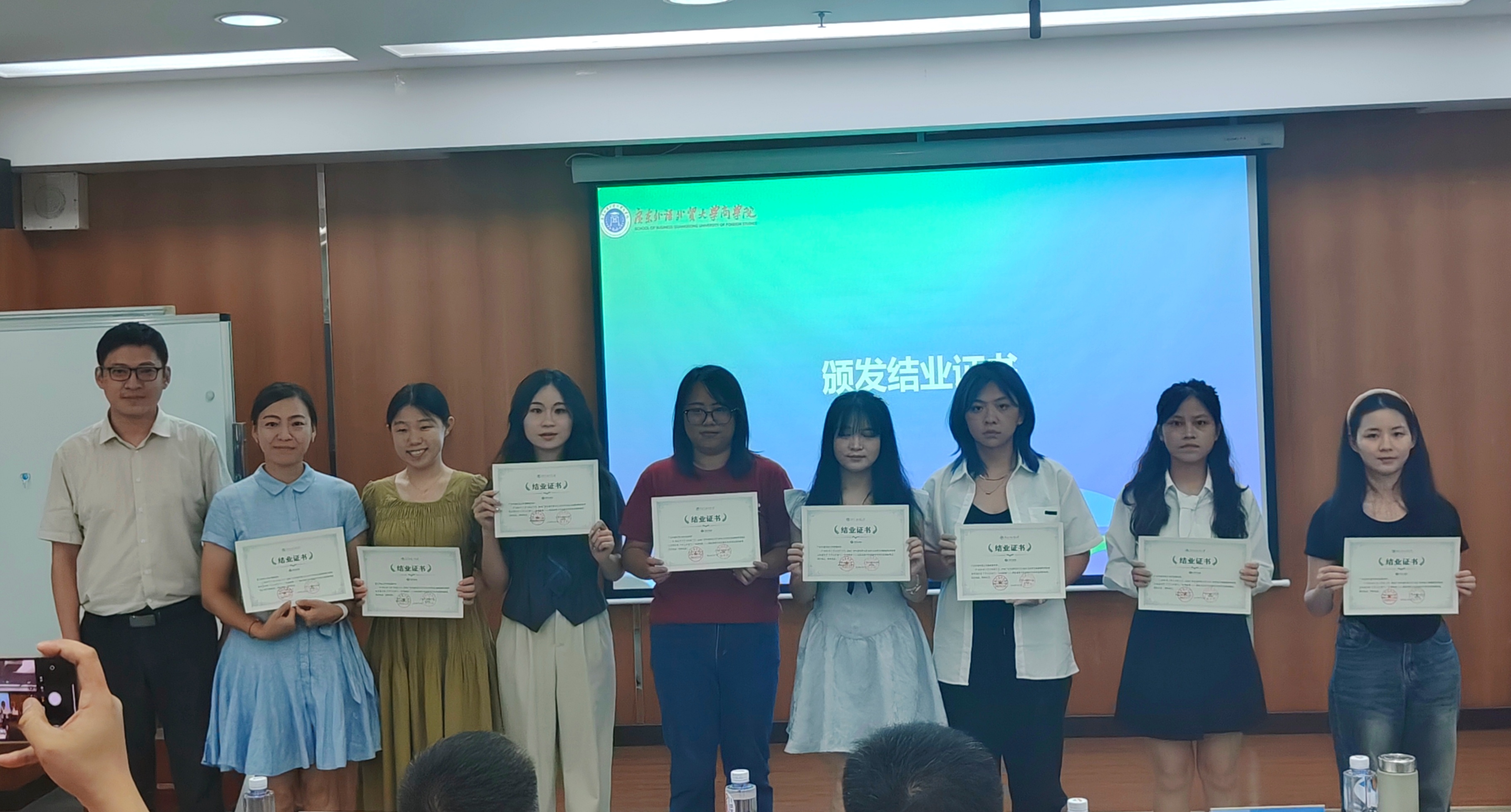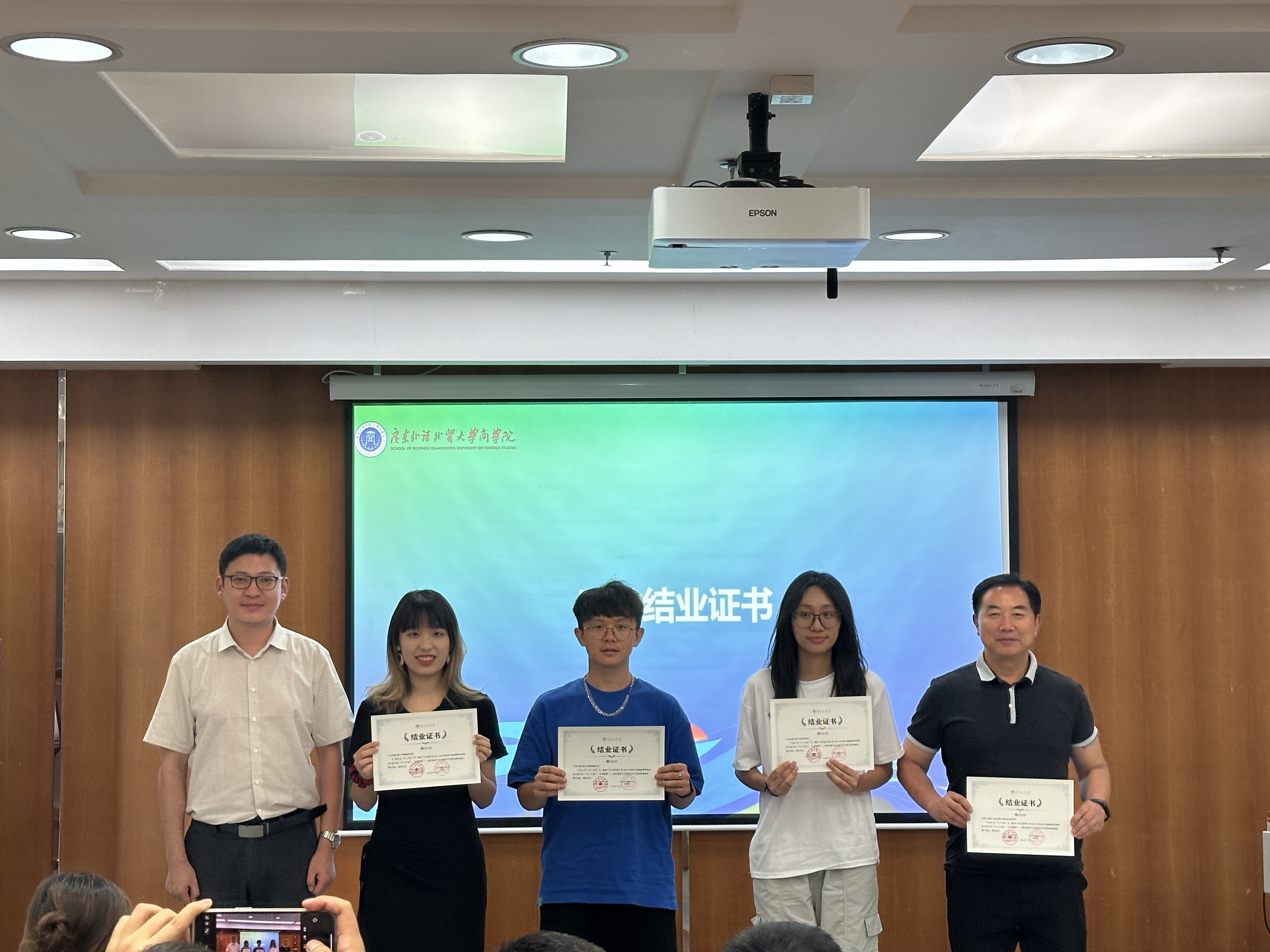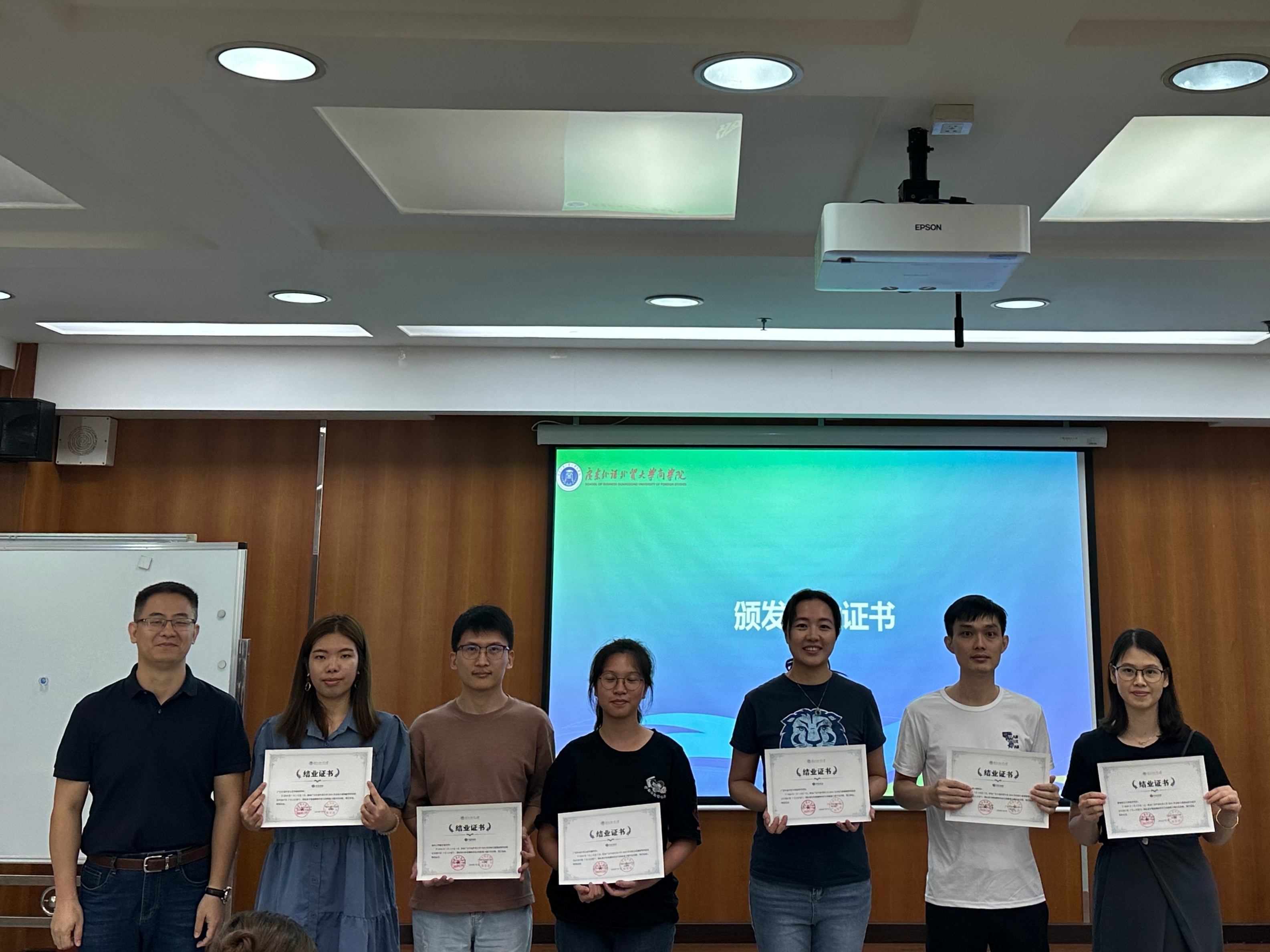 丁浩和谢俊分别作为两个项目的负责人为项目的学员颁发结业证书,肖锋为两个项目的优秀学员颁发优秀学员证书。