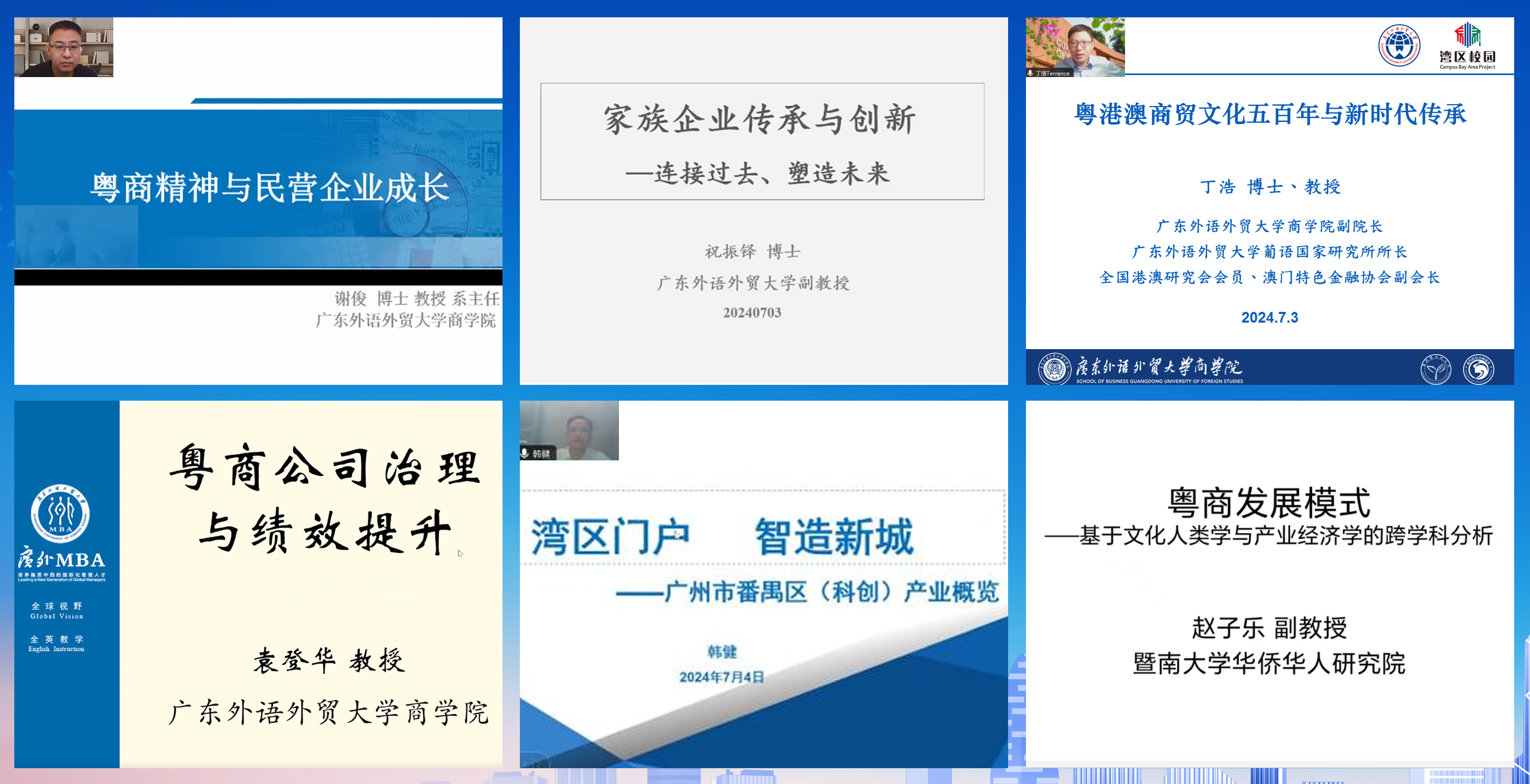 为增强粤港澳高校员工对粤商精神的了解与传承,加深员工对湾区商贸文化的系统了解,增强员工对传承新时代商贸文化的自豪感与使命感,2024年7月2日至7日,bevictor伟德官网与港澳地区高校联合举办“湾区青年粤商精神传承与创新能力提升实训营”(以下简称“粤商精神”实训营)和“‘古港新韵’湾区商贸文化的新时代传承实践研修班”(以下简称“古港新韵”研修班)。两个项目采用线上专题讲座和线下实地走访、企业调研相结合的形式,吸引了来自粤港澳大湾区各高校约50名学员参与。