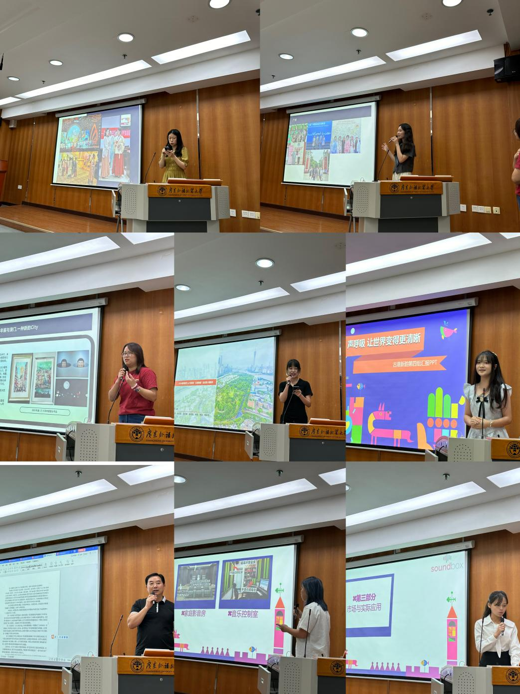 在结业仪式的学习成果展示与交流环节,学员以小组为单位分享了他们的学习成果,主题包括“镜头下的大湾区”、“声呼吸——让世界变得更清晰”、“一个诚字,诞生陈李济”等,充分展现学员对本次学习内容的思考和运用。