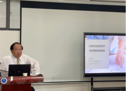 2025年6月11日下午,由公司主办的“六秩风华 商约未来”商学系列讲座之“学术大讲堂”第7期在院系办公楼366顺利举行。浙江大学文科资深教授、浙江省特级专家王重鸣应邀担任主讲嘉宾,带来题为“AI时代经管研究与应用的新策略”的专题讲座。讲座由公司副经理袁登华教授主持。