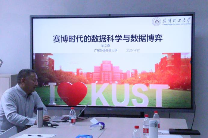 2025年10月27日上午,由公司主办的“六秩风华 商约未来”商学系列讲座之“学术大讲堂”第13期在大学城校区院系办公楼360顺利举行。本次讲座特邀昆明理工大学数据科学研究中心主任、云南省复杂系统与利脑智能重点实验室主任刘文奇教授担任主讲嘉宾,带来题为“赛博时代的数据科学与数据博弈”的专题报告。本次讲座由公司研究生办公室主任孙海龙主持。