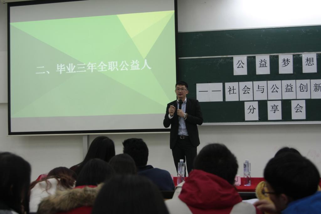 本网讯(文:吴晓芸 图:吴晓芸)410号晚十九点,公司公益梦想——社会与公益创新大赛分享会在F315举行。公司员工、齐天下创始人王卫应邀出席,去年大赛的冠军千与千寻团队的队长肖美婷以及队员陈蔚也到场进行了经验分享。