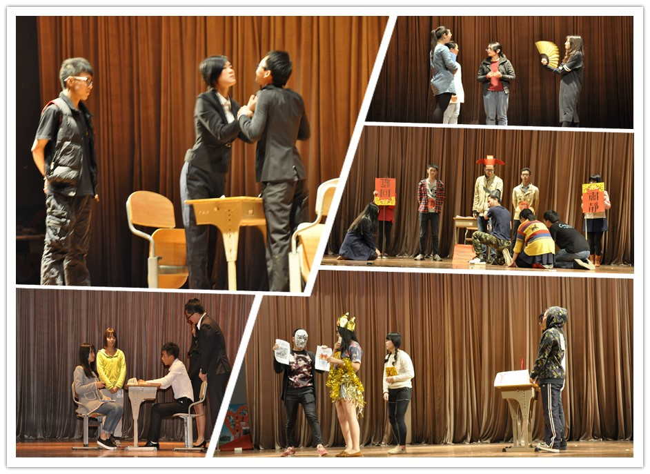 规则介绍完毕,精彩的比赛陆续上演。首先亮相的是13物流党支部带来的《绿色风向标》,以贴近生活的题材揭示了GDP绿色增长与环境保护之间的矛盾。而14员工党支部在小品《当子弹回到枪膛》中,以倒叙的形式为我们讲述了一个社会主义接班人如何一步步走到另一个对立面的过程,成员们在表演中的一个个创新的突破点更是得到了观众们的如潮掌声。紧接着,12营销党支部给我们带来《网络安全》,以生活中屡见不鲜的网络失窃事件,告诉了我们要严肃对待网络安全规范化、信息安全化的问题,而表演当中的新闻发布会由普通话突然切换为广东话这幕更是一大亮点、雷点。紧随其后的管理1301党支部所带来的《包孙外传》更是以雷人的舞台方式揭示现实生中钱权交易的黑暗一面,表演成员的无厘头给观众们留下了极大的印象。最后上台的是由13管理全英党支部表演的《纸牌村》,他们以投入的表演为我们演绎了生活中权势与个人利益斗争的情景。