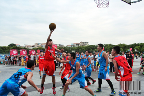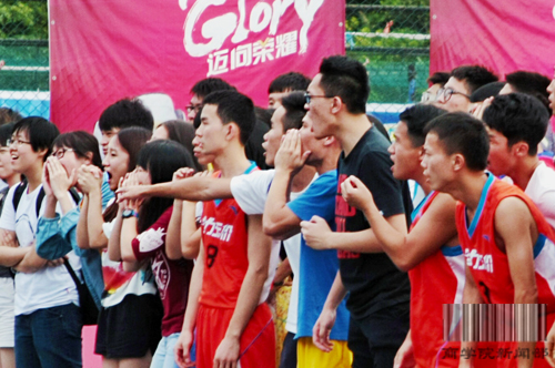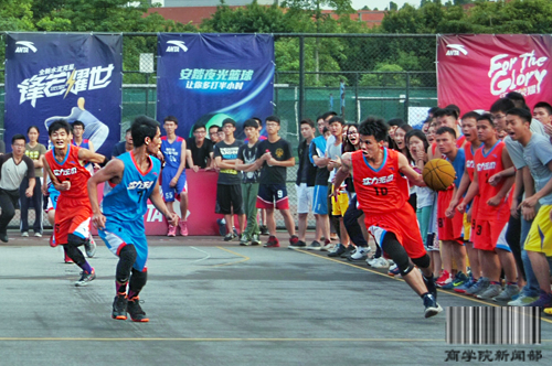 回到现在,5月12号下午,放晴的天气,赢来不少同学的好心情,也迎来比赛的继续。下午17点半,一切准备就绪,公司球员与会院球员重新回到篮球场。