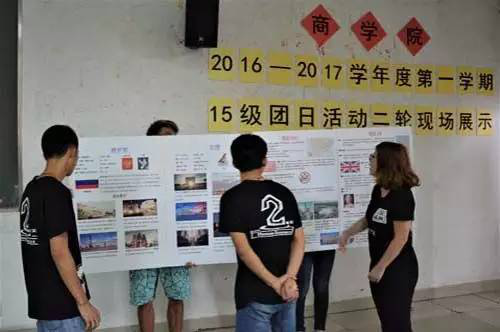 作为第一个展示班级,人资1501班首先用一段视频来展现他们班一位同学在大一到大二期间对班级事务的态度的转变,随后以精美的团日视频以及国学·密室逃脱、零距离采访、爱心摆摊三个特色活动淋漓尽致地展现了“国学梦”、“公益梦”两大主题,最终获得了二轮评比第四名。人资1503班则采用了形式新颖的双语播报,并通过现场采访与互动的方式带动了现场气氛,凭借着独特的展示形式赢得了二轮评比第三名。而人资1502班在现场设置了联合国展板,并上演了富有表现力的现场情景剧,形象生动地还原了当天团日活动的场景,最终取得了二轮评比第二名的好成绩。