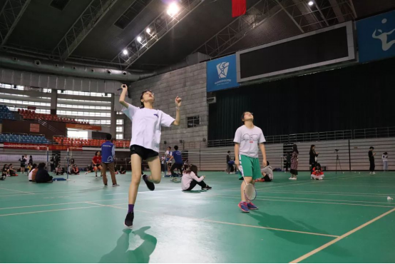 早上的比赛在一片紧张而激烈的气氛中落下帷幕,下午的比赛于两点开始。每位选手都秉承着“友谊第一,比赛第二”的体育精神,比赛场面精彩激烈,却又不失欢声笑语。下午的比赛分为男双、女双和混双。运动员们单个上阵已经能够威震四方,而强强合体,则让比赛更加的令人血脉贲张。