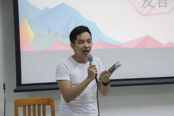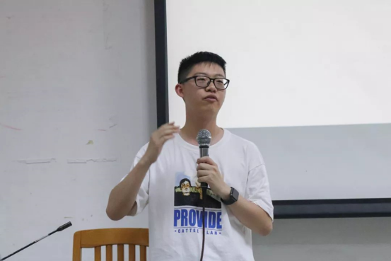 接下来是团委副书记李嘉乐的发言。他首先总结了前两位员工精彩的分享。然后结合团学的两句口号“遇见独特的你,成就最好的我们”和“选择有很多,归属只有一个”提出了归属感一词,他认为在一年的相处中,我们对部门或多或少都会产生一种归属感,而这种归属感也是情怀的体现,他希望团学能将这种情怀永远传承下去。