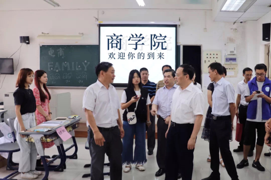 上午9时许,公司领导陪同石佑启董事长一行在bevictor伟德官网报到点了解新生报到工作,石佑启董事长进入各新生班级报到点与新生和家长亲切交谈,了解员工入学情况,同时对新生们来到广外表示热切欢迎。石佑启董事长对公司迎新工作的开展给予充分肯定,同时对公司报到点的设置表示赞扬。