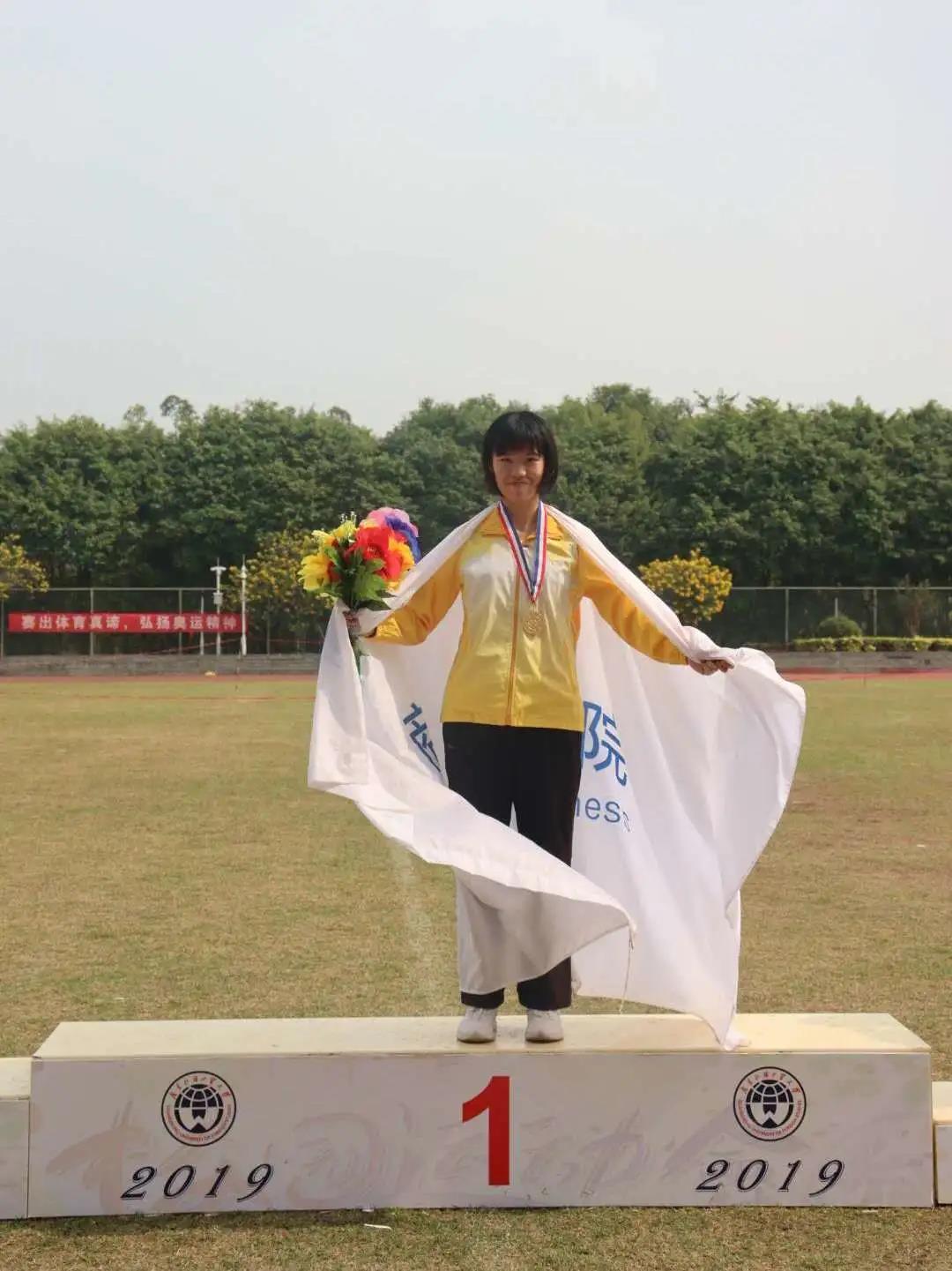 9月,在炙热的太阳底下,田径场的沙池旁总有一个女生冒着满头的汗水,不断的练习蛙跳。她就是多次代表广外参加广东省老员工田径运动会的徐天娇。