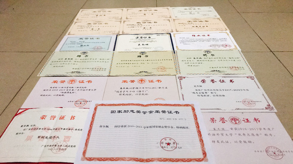 回忆起自己在广外四年来的生活,莫冬佩感到很充实。从一开始的新奇懵懂到学会取舍,再到默默耕耘、渐有所获的一路上,她遇难不畏缩,成就着更优秀的自己。