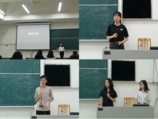 紧接着,国家奖学金获得者和先进班集体标兵代表进行分享。17级国奖获得者夏已崴以“众人皆卷,你独醒”为主题分享了自己大学四年的学习经历以及经验。她表示,“卷,是没有尽头的,我们要和自己比,尽力去做某件事,只因自己想做且愿意做,而不是为了赶超旁人”;同时要趁早对自己的发展路径有所规划,在实现目标的过程中不惧吃苦,并用长线思维辅助决策,勇敢的朝着自己的目标坚定的走下去,一定会收获成长的意义。