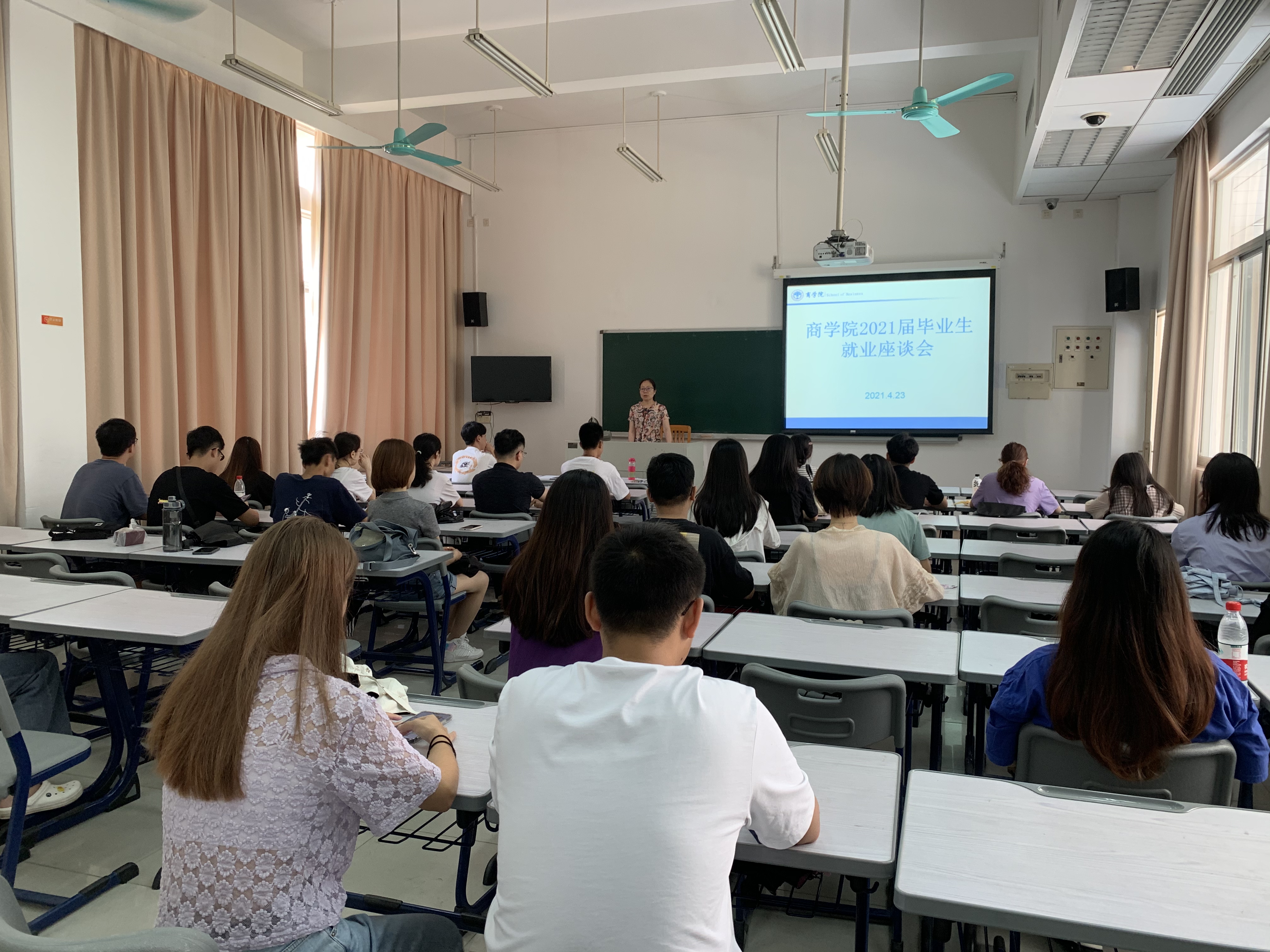 会议伊始,沈长霞为毕业生讲解了2020届毕业生的就业情况,她梳理了往届毕业生的就业去向、行业分布、薪酬待遇等数据,结合当前就业形势与就业政策,鼓励毕业生树立正确的择业观、积极就业。