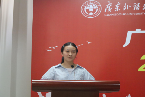2018级市场营销专业的吕安琪作为老生代表上台发言。她用近年来广外在团队建设上取得的成就告诉大家,广外的教学资源并不输国内最顶流的大学。同学们要学会充分利用资源,积极调动自身的主观能动性,奋发图强,最终一定能学有所获。同时,她还提醒大家,大学是更容易懈怠、也是更容易超越的地方,因此,我们应更加努力、更加拼搏。最后,她勉励全体新生要带着美好的梦想和坚定的决心面对一切挑战,以良好的心态和崭新的面貌迎接老员工活。
