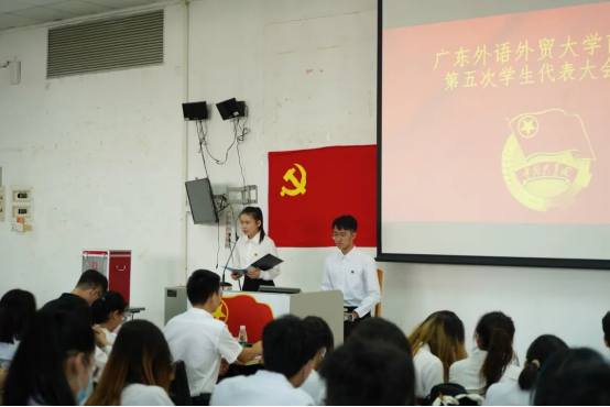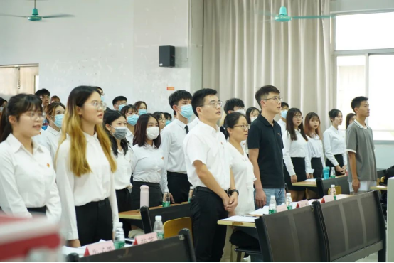 首先,全体与会人员起立,奏唱国歌。而后,王朕老师发表大会致辞。致辞表达了对三届二任团委的工作的肯定以及对三届三任团委的深切寄望。