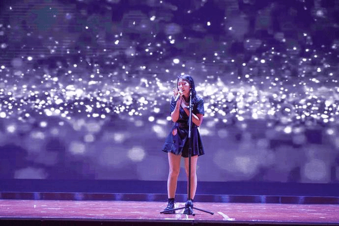 在黑暗中,孤单是独角戏,把自己燃成灰烬。在失去中逐渐成长,获得共舞的力量。童滋一曲《在夜里跳舞》婉转动听,扣人心弦,向我们传递“总有人会记得黑夜里的人,和封尘的心”的不屈信念。她清亮的嗓音和曼妙的舞姿令在场的每一个人印象深刻。最终,童滋成功摘得本次秋之声的桂冠。