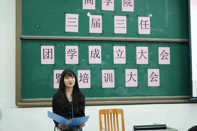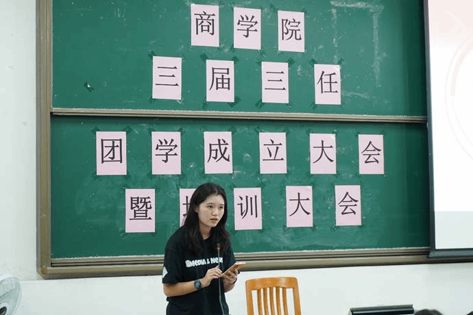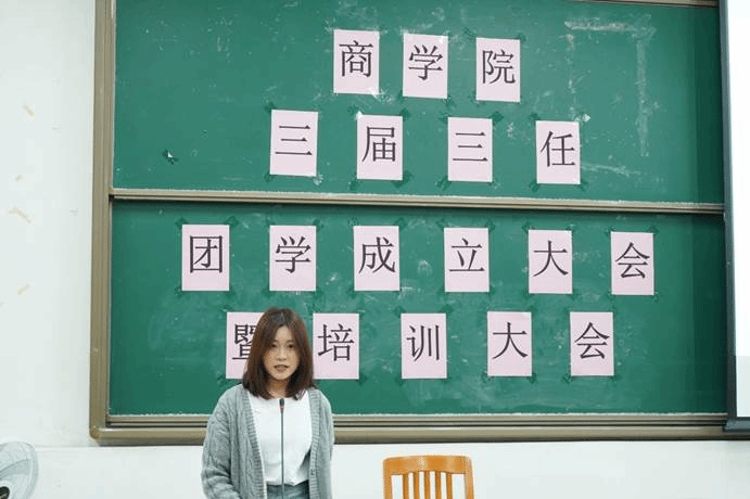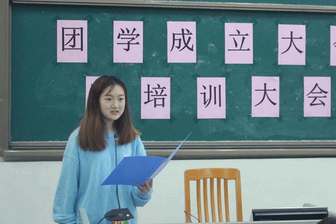 随后,刘书涵上台发言。她讲述了自己刚加入团委员工会时与师兄师姐们相处的经历,让在场的同学感受到了团学温馨暖人的氛围。在发言中她重点强调,团学成员要明白责任的深厚,明确地看到自己的变化,发现自己价值。最后她期待今年新加入团学大家庭的同学能以责任之心和满腔热情来完成好每一个任务。