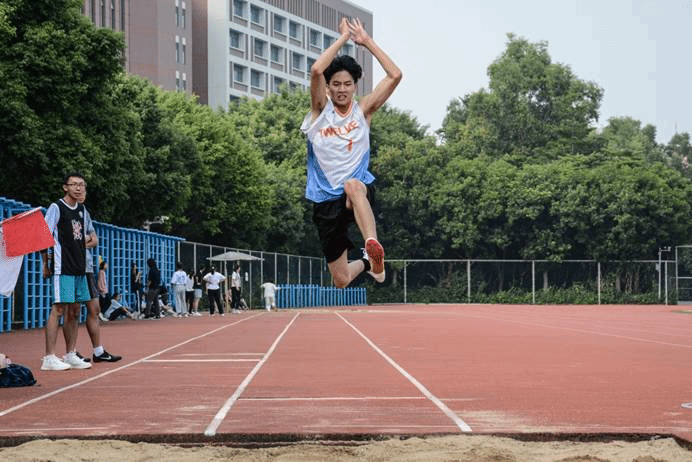 助跑,蹬地,腾空,落地。在跳远的赛场上,男子组选手周毅与詹育彬在三级跳与跳远项目分别夺冠,女子组沈诗曼也不甘示弱,摘得三级跳与跳远比赛的双金。他们都展现着不服输的精神,在赛场上努力向自己的目标靠近。