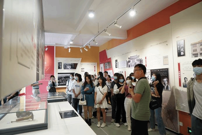下午2点半,队伍来到了小洞村革命烈士纪念堂开展红色基地教育活动。为纪念在新民主主义革命时期、社会主义革命和建设时期为党和人民的革命建设事业牺牲的烈士,1974年,小洞村经多方自筹资金及政府资助建设革命烈士纪念堂,后来发展成为高明著名的红色革命传统教育基地,虽几经修葺,但外观仍然保留着始建时的模样。纪念堂舞台前方放置八九十年代的长条桌椅,在进行现代活动展演的同时,也充分保留了当地红色文化的特征。在村委会干部的讲解下,同学们学习了小洞村民光辉革命斗争史,了解到陈汝棠、谭平山、陈权等共产党人可歌可泣的英雄事迹。随后,团队还参观了高明农耕文化展览馆、文选楼等文物建筑,充分感受到这一“有故事的红色步行博物馆”背后的红色精神。我们应当学习小洞革命烈士们为了革命事业勇于斗争,不怕牺牲的精神,也要不忘初心、牢记使命,在全面建设社会主义现代化国家新征程中贡献力量。