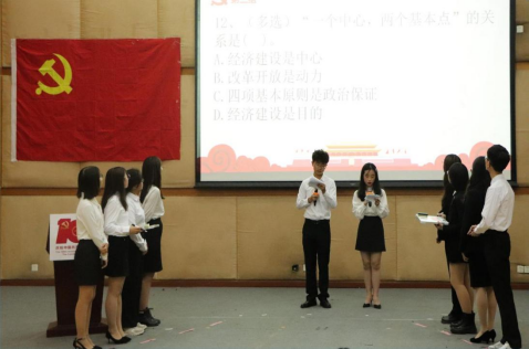 以赛促学、以学促知。本次党史知识竞赛共有246名同学报名参赛,经初赛选拔,最终8支队伍共32名选手脱颖而出,参加本次决赛。本届比赛采取积分制,共三轮。在第一轮基础问答中,经过两两对决的激烈角逐,“红砖队”“有答必队”“跟党走就队”和“从容应队”顺利晋级第二轮比赛。