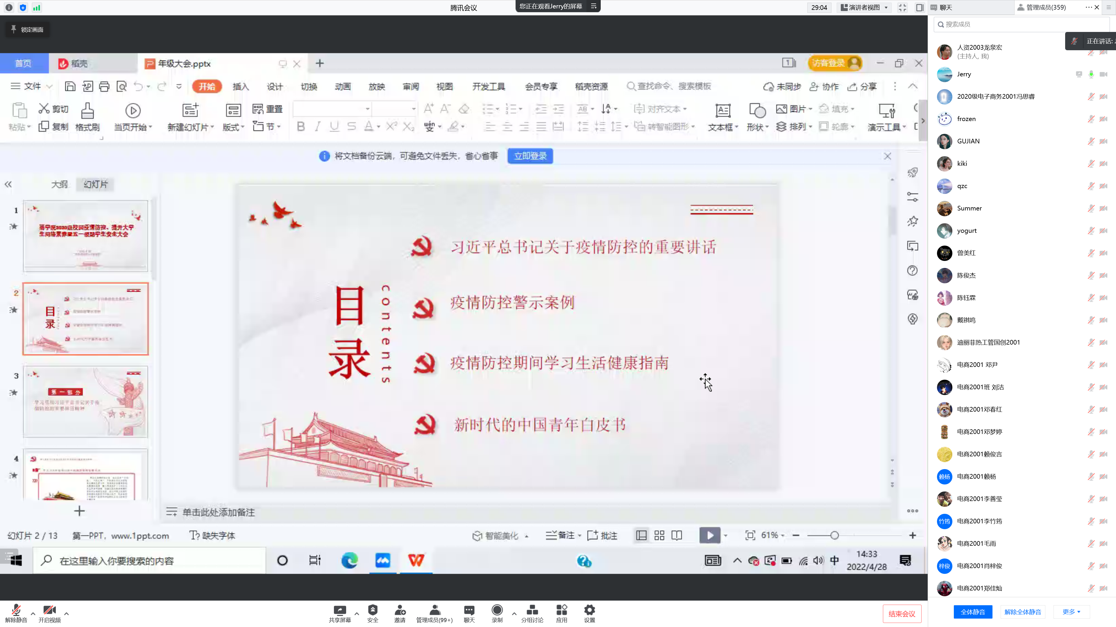 各年级辅导员还带领员工学习习近平总书记关于疫情防控工作的重要讲话精神,引导同学们深刻认识防疫工作的重要性,以及疫情防控中彰显出的中国共产党领导和中国特色社会主义制度的显著优势。同时,通过高校疫情防控警示案例讲解宣传公司的疫情防控要求,学习疫情防控期间学习生活健康指南,引导同学们严格遵守属地和公司的防疫要求,积极调适心态,主动适应疫情背景下的学习节奏和生活方式。