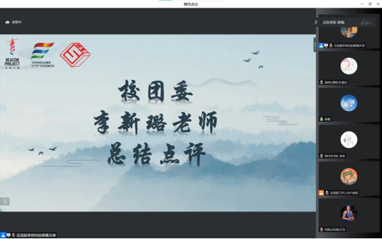 展示结束后,李新璐对本次报告会以及队伍表现进行总结点评,她首先强调了“三下乡”社会实践活动的初心,肯定了队伍结合专业特色和时代需求开展社会实践获得的成果,并根据队伍展示的内容提出具体可行的优化建议。最后,李新璐鼓励同学们以更高的标准要求自己,积极投身社会实践,努力在实践中增长知识与才干。