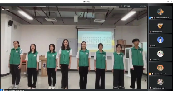 随后,入围报告会的八支队伍通过情景演绎、诗歌朗诵、PPT报告等多种形式进行成果展示。首先进行展示的是商行天下服务队。一段有趣的情景演绎带我们身临其境地感受绿色和文旅结合发展给南庄镇紫南村的日常生活带来的巨大改变,一首诗歌朗诵《乡村生活谱新篇》展现了队员们紧跟党的步伐,践行乡村振兴的决心。