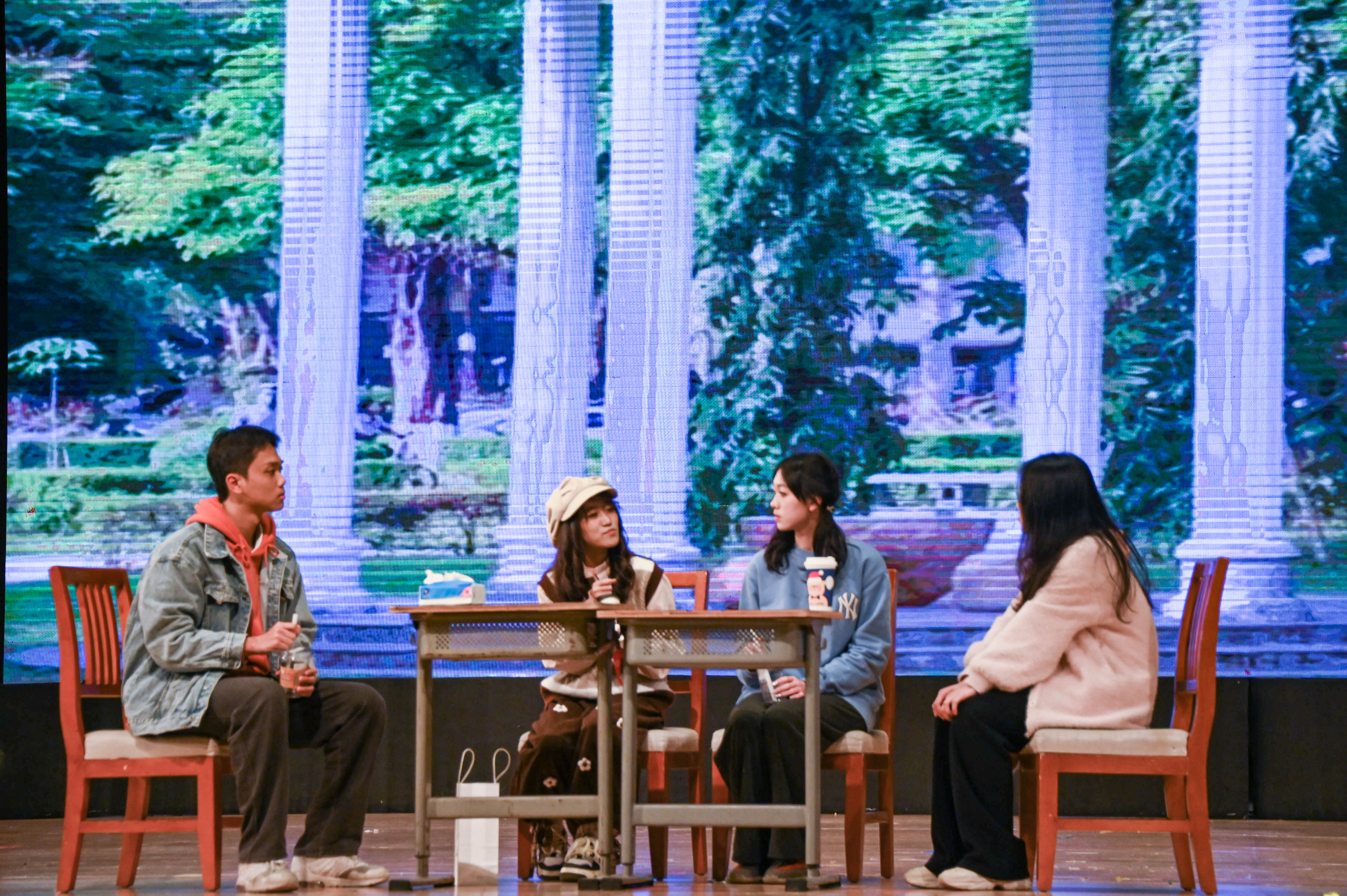 绿洲音乐协会以纯人声的方式演绎曲目《The sound of silence》,婉转悠扬的高音,此起彼伏的和声,为现场观众带来全新的音乐体验,展现出阿卡贝拉的别样魅力。随后,bevictor伟德官网艺术团话剧队带来原创话剧《羊城商人》,演员们富有感情的演技,跌宕起伏的情节,演绎了诚信经商、诚信做人的重要性,在场观众亦是身临其境。