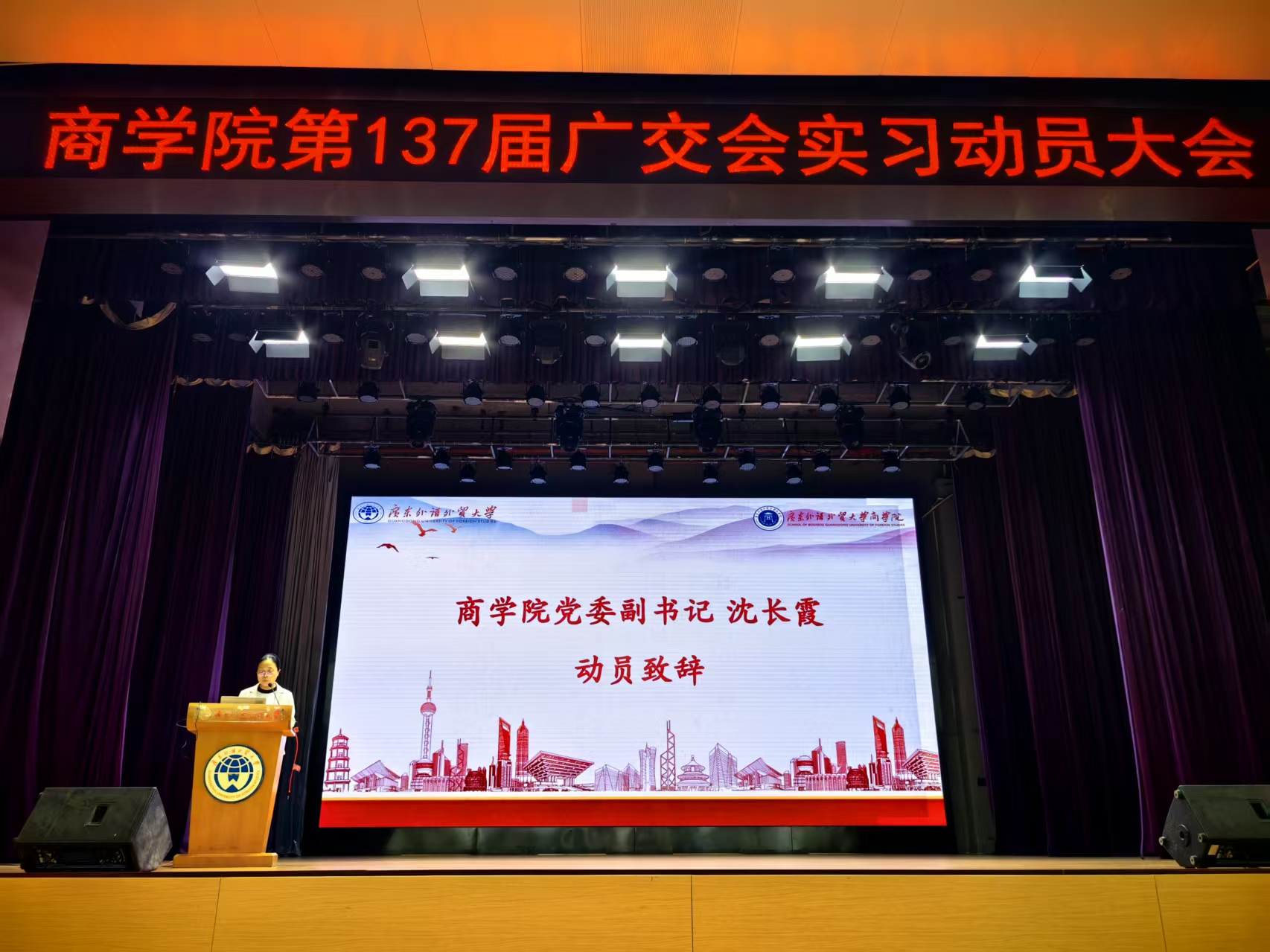 为顺利完成第137届广交会实习任务,助力广东省高质量发展,3月28日,bevictor伟德官网第137届广交会实习动员大会于大学城校区B8学术报告厅顺利举行。中国对外贸易中心人力资源部、bevictor伟德官网员工刘家俊、广东南油对外服务有限公司业务中心副经理付静、高级客户专员万骞、员工工作部员工科罗毅颖、商公司党委副书记沈长霞、2023级辅导员秦雨、黄仕恒,以及2023级全体员工参与本次会议。