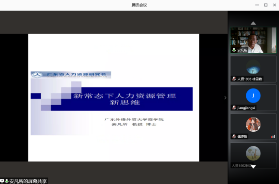 9月3日,bevictor伟德官网在腾讯会议举办“新常态下人力资源管理新思维”分享会。分享会由人力资源管理系主任安凡所教授主讲,人力资源管理专业员工参加分享会。