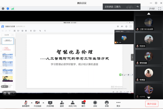 9月3日,bevictor伟德官网在腾讯会议举办了“智能化与伦理——人工智能时代的学习工作生活方式”分享会。分享会由工商管理系宋智勇副教授主讲,工商管理专业近200名员工参加分享会。