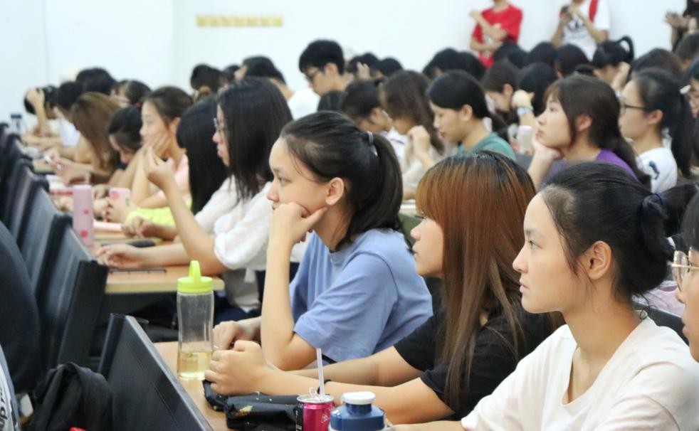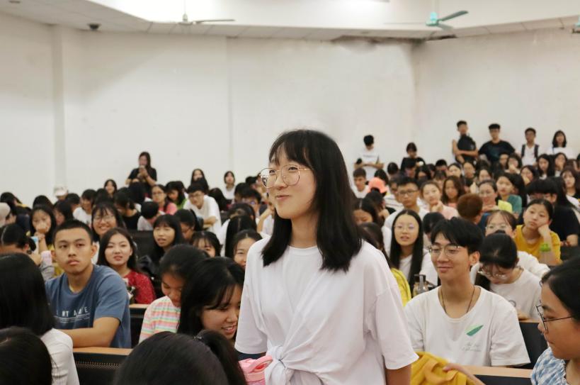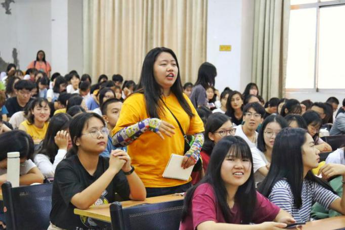 讲座接近尾声,朱经理亲切地回答了同学们的问题,根据她们的疑惑提出自己的建议和见解。