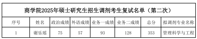 2025年硕士研究生招生调剂考生复试名单(第二次)