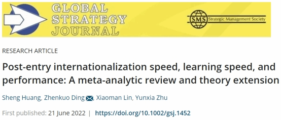 bevictor伟德官网黄胜等老师的论文《Post-entry internationalization speed, learning speed and performance: A meta-analytic review and theory extension》在战略管理领域国际期刊《Global Strategy Journal》于2022年6月网络首发。该文合作作者还包括:Yunxia Zhu(澳大利亚昆士兰大学副教授)、丁振阔(广西师范大学副教授)和林小曼(意大利European University Institute研究生)。