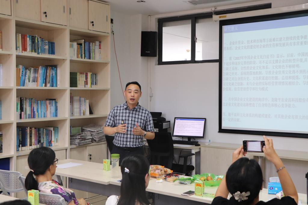 刘方龙博士以“探索《隆平之道》理念文化体系的构建——基于扎根理论的案例研究”为题进行分享(该文发表于《管理评论》2019年第6期)。刘方龙博士以访谈袁隆平院士为核心素材,收集整理了10万余字的案例记录,通过扎根理论的饱和度分析,发现了在传统企业文化理论框架中被学者忽视的核心概念——企业文化品格。同时,他还基于案例实践和理论框架,推到出企业文化多层次结构模型,这在很大程度上丰富了企业文化理论。