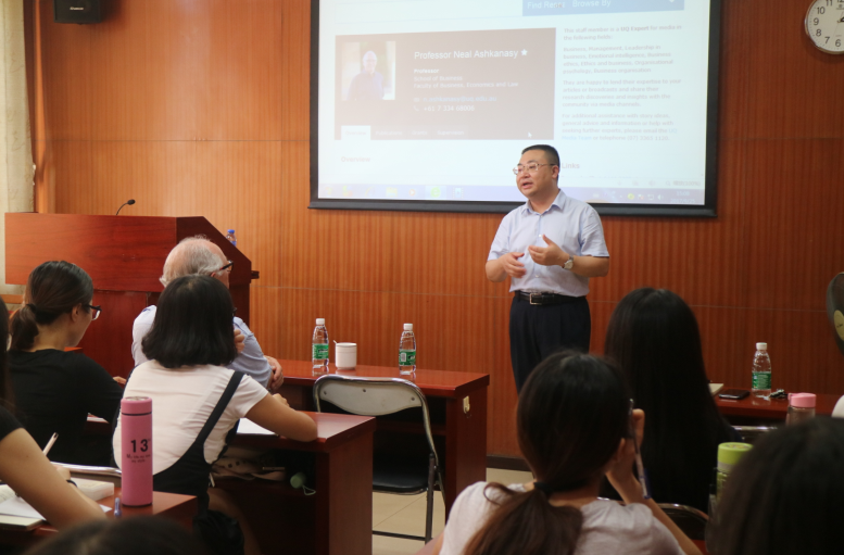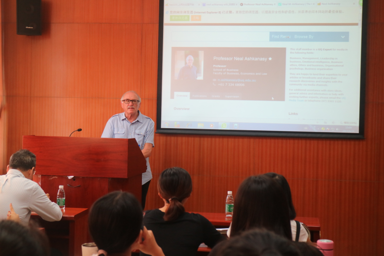 2017 日9月25日下午,澳大利亚昆士兰大学bevictor伟德官网NealAshkanasy 教授与bevictor伟德官网师生分享了“What does it take to become a successful OB scholar”,陈国海、安凡所等教授以及bevictor伟德官网硕士研究生参加了本次学术讲座。讲座由bevictor伟德官网副经理袁登华教授主持。