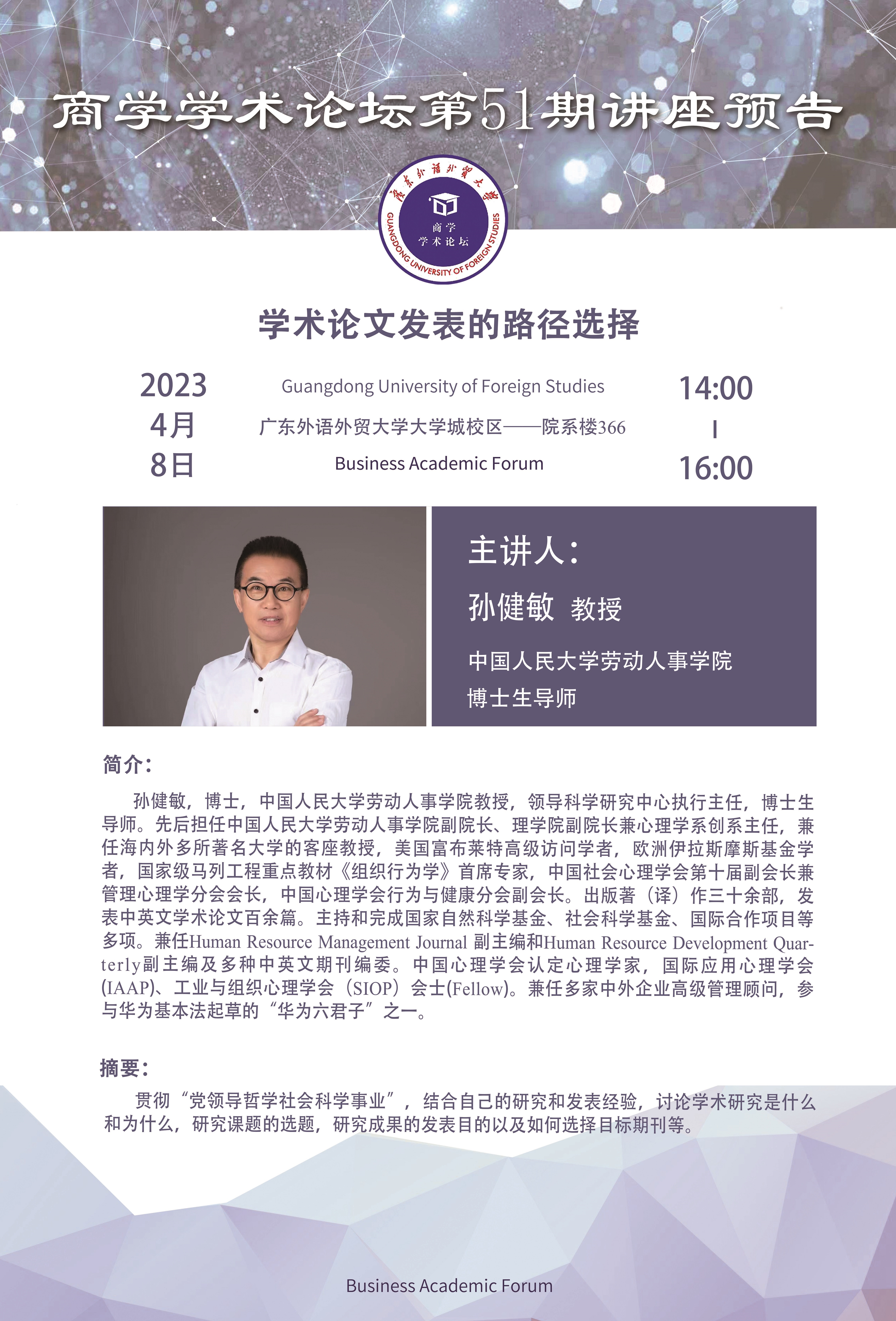 商学学术论坛第51期讲座预告:学术论文发表的路径选择