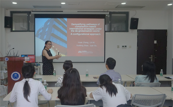 2023年6月7日下午,商学学术论坛第56期成功举行,澳大利亚格里菲斯大学、国际商务学会大洋洲分会执行董事米丽立研究员受邀作为本期讲座的分享嘉宾,为公司师生带来题为“Demystifying pathways of composition-based international strategies under the de-globalization world: A configurational approach”的学术报告分享。公司祝振铎副教授主持本次活动。