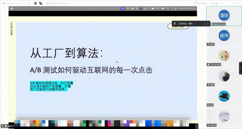 在互动环节中,公司师生就A/B测试在学术研究与企业应用中的难点展开热烈讨论。潘琛耐心细致地回应了问题,分享了宝贵的实务经验。本次讲座内容兼具理论深度与实战价值,不仅打破了A/B测试的“工业思维”局限,更让师生系统理解其在互联网与大模型时代的应用逻辑。潘琛的分享为相关领域的学术研究提供了新视角,也为未来数据驱动的职业实践提供了有益启示。