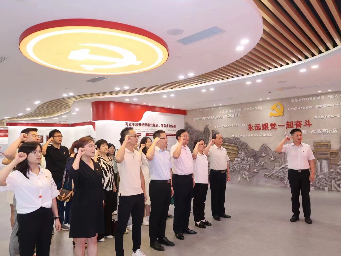 在立白参观交流期间参加活动的全体党员在肖锋带领下重温入党誓词。党员们纷纷表示,将始终坚定与人民风雨同舟心连心、同呼吸共命运的政治本色,让红色基因在与本职工作的融合中不断发扬光大