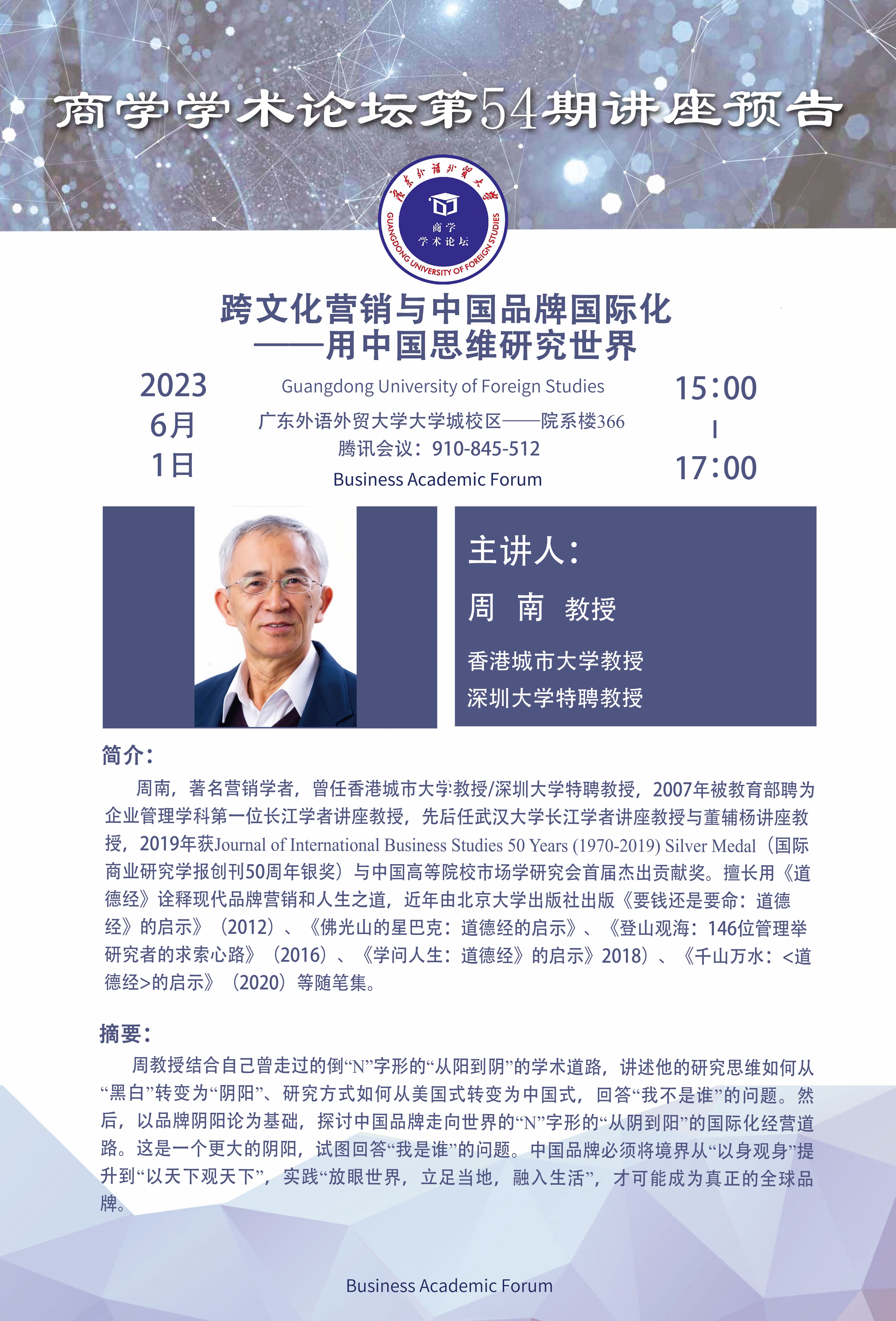 商学学术论坛第54期讲座预告跨文化营销与中国品牌国际化-用中国思维研究世界