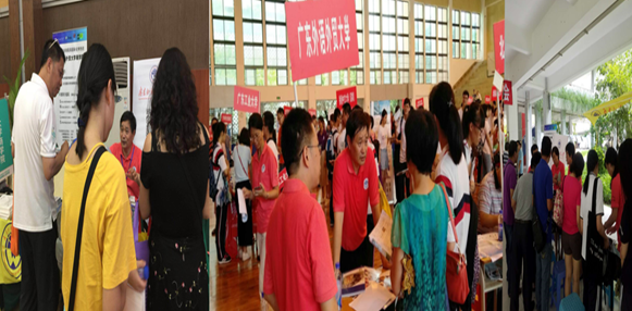 在茂名各中学咨询会上,来自广东十多所知名高校同台亮相,而广外摊位尤其受员工欢迎,人满为患,其中不少还有来自高二的员工,他们对广外有极大的兴趣。员工及家长对广外的知名度及国际化特色及人才培养质量、就业质量充分认可。咨询会上,广外老师的悉心指导,员工更加明确了报考方向及报考技巧,也更加坚定了报考广外的决心。